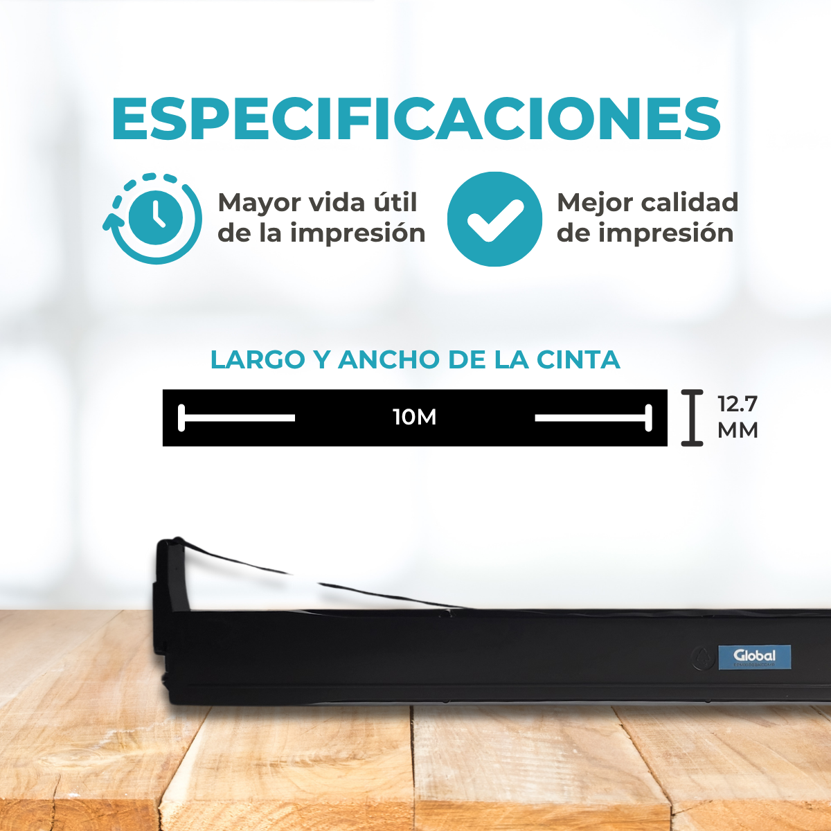 La EPMX100BK de Global Electronics es una cinta genérica color negro fabricada con materiales de alta resistencia, ideal para impresoras matriciales industriales, comerciales y administrativas.