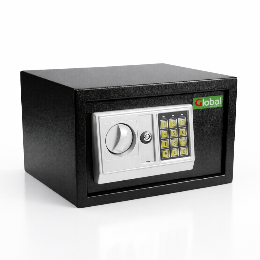 La caja fuerte digital modelo SAFEBOX‑D‑31X20X20 de Global Electronics combina cierre electrónico y llaves mecánicas para ofrecer alta protección a tus documentos, joyas y objetos de valor.