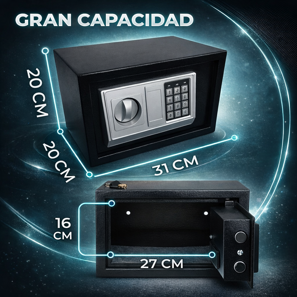 Caja Fuerte Digital 31×20×20 cm con Teclado y Llaves