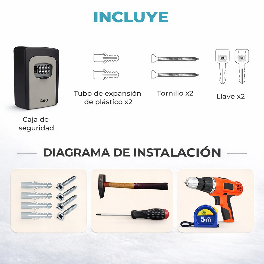 Presentamos la SAFEBOX‑KEYS de Global Electronics, perfecta para Airbnb, bicicletas, oficinas o residencias. Con apertura mediante combinación mecánica y respaldo de 2 llaves físicas, ofrece seguridad sin depender de baterías o contraseñas digitales.