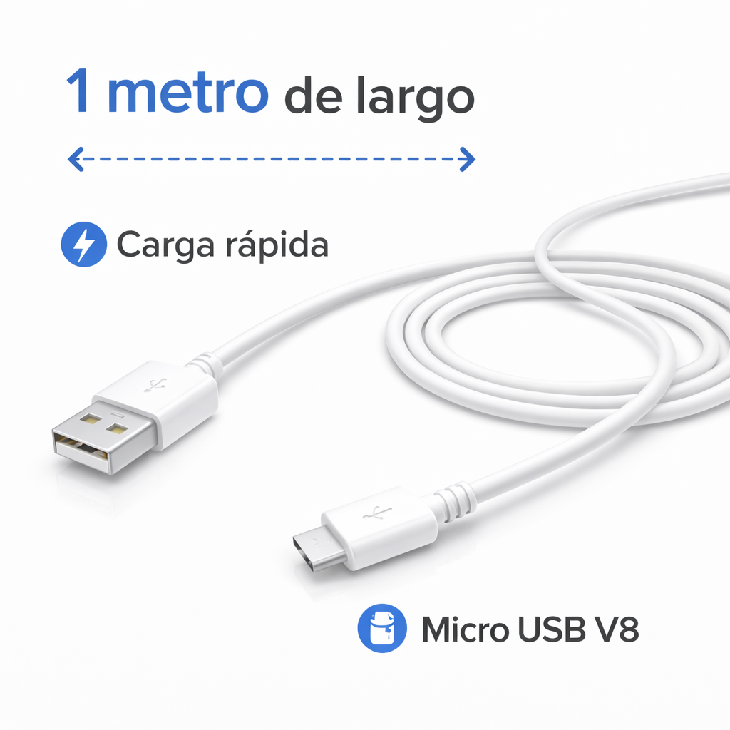 ¡Conecta y Carga! Cable Micro USB V8 1 Metro