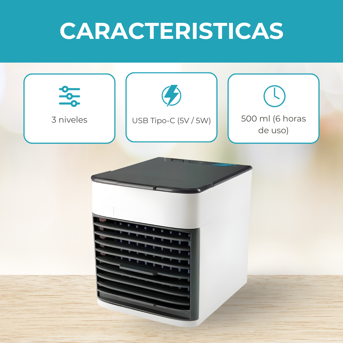 ✅ Ideal para verano, su diseño compacto enfría, humidifica y purifica el aire. Portátil y silencioso, perfecto para cualquier ambiente.