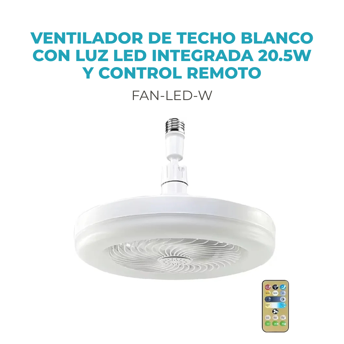 Diseño moderno con 3 velocidades, 3 tonos de luz LED y control remoto. Ideal para hogar y hotel. Potencia eficiente 20.5W.
