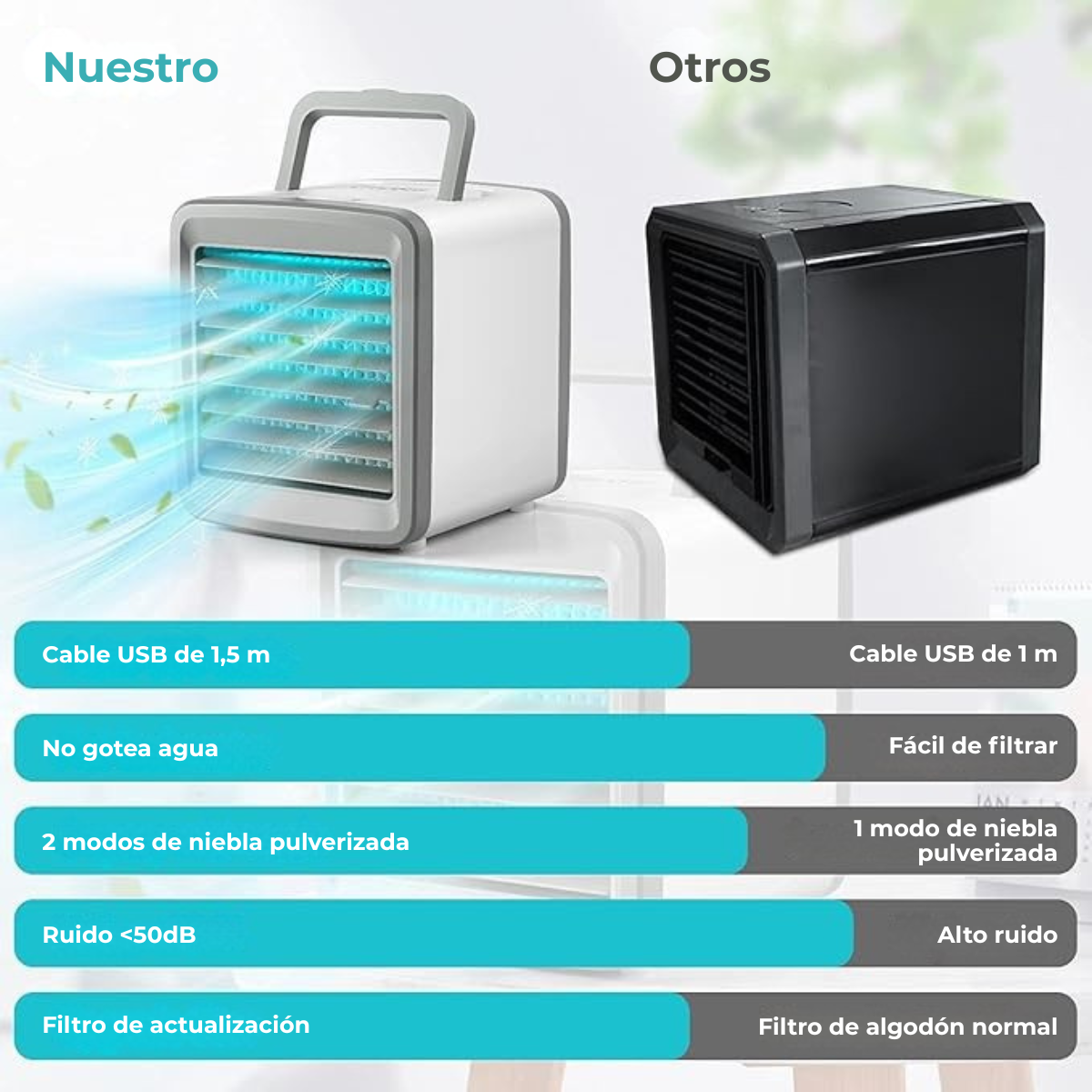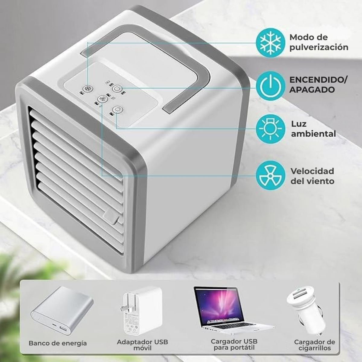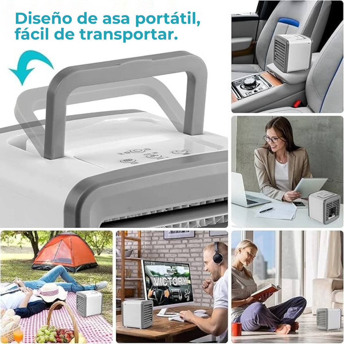 Portátil, silencioso y recargable. Ideal para uso en dormitorio, oficina, hotel o actividades al aire libre.