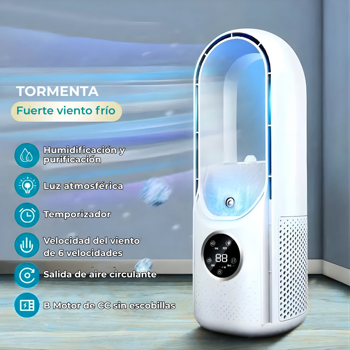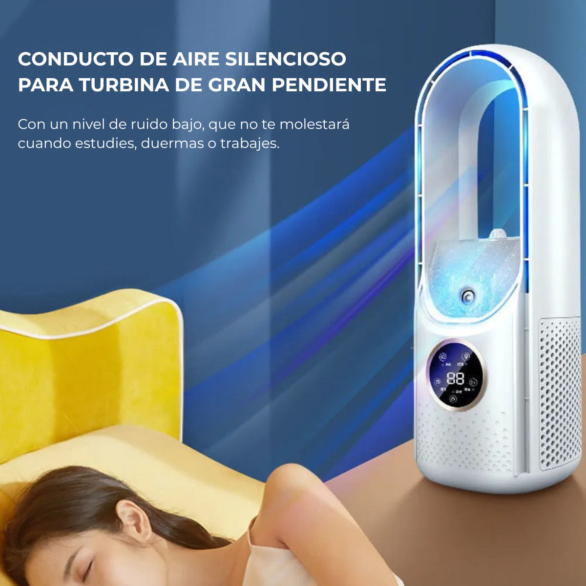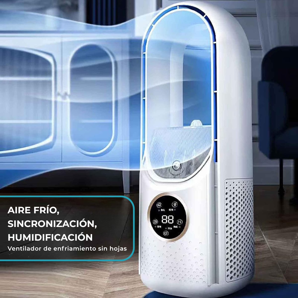 El ventilador sin aspas con luz LED es la elección perfecta para mantener frescos y cómodos tus espacios con un diseño innovador y seguro, ideal para hogares con niños o mascotas.