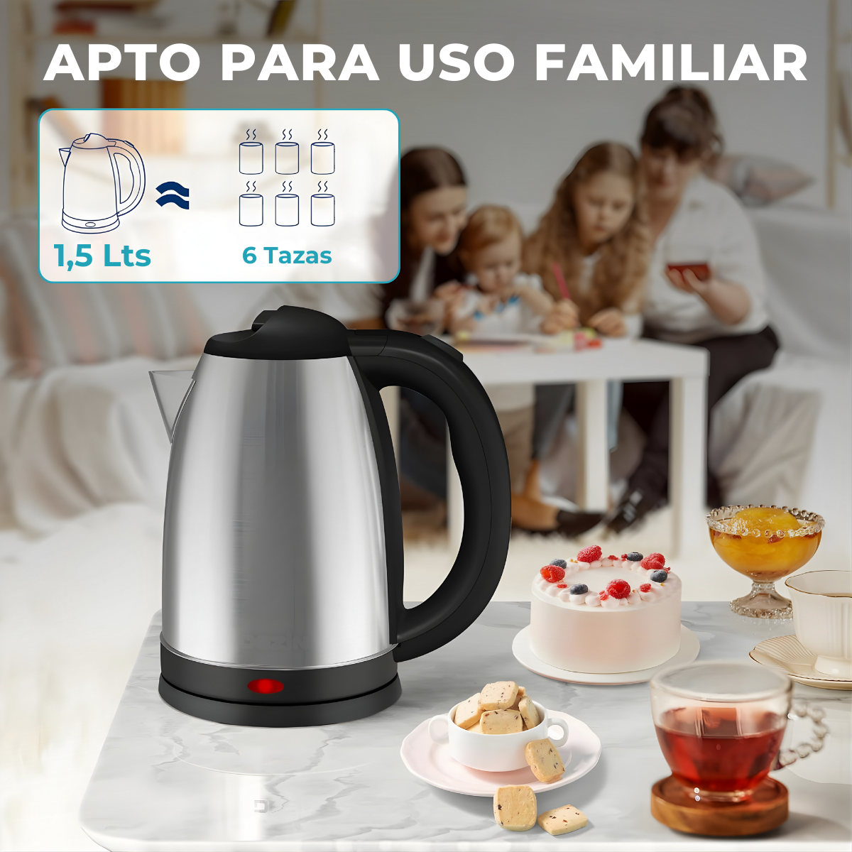 Esta pava eléctrica de 1,8 litros ofrece seguridad y eficiencia con apagado automático, protección contra ebullición en seco y control de temperatura. Ideal para cualquier cocina, oficina o viaje.