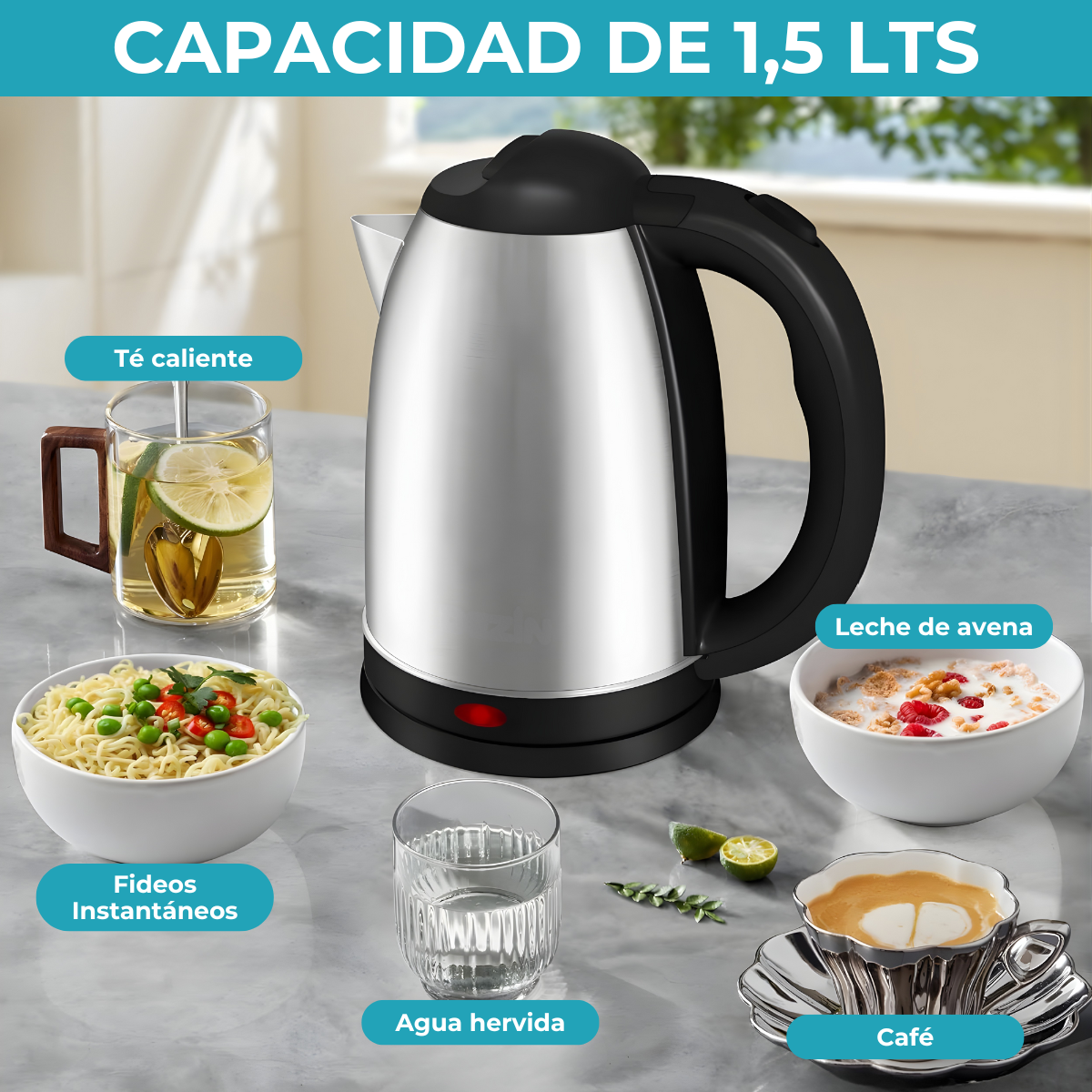 Pava Eléctrica 1,5L Acero Inoxidable
