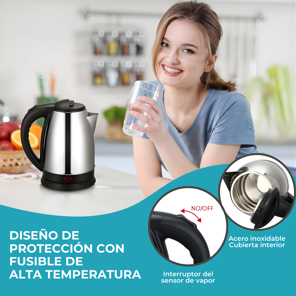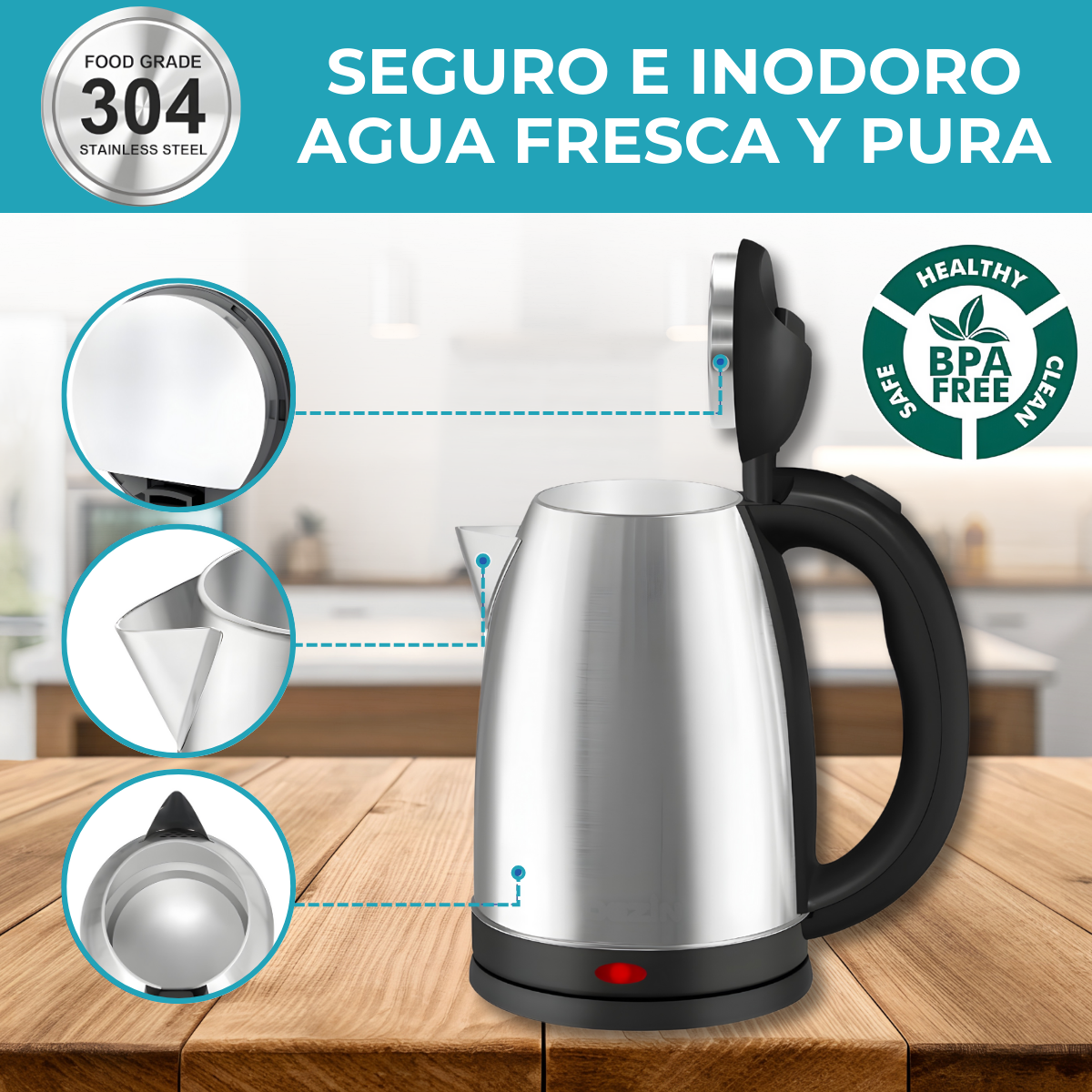Ebullición rápida, apagado automático y diseño duradero en acero inoxidable para hogar, oficina y uso al aire libre.