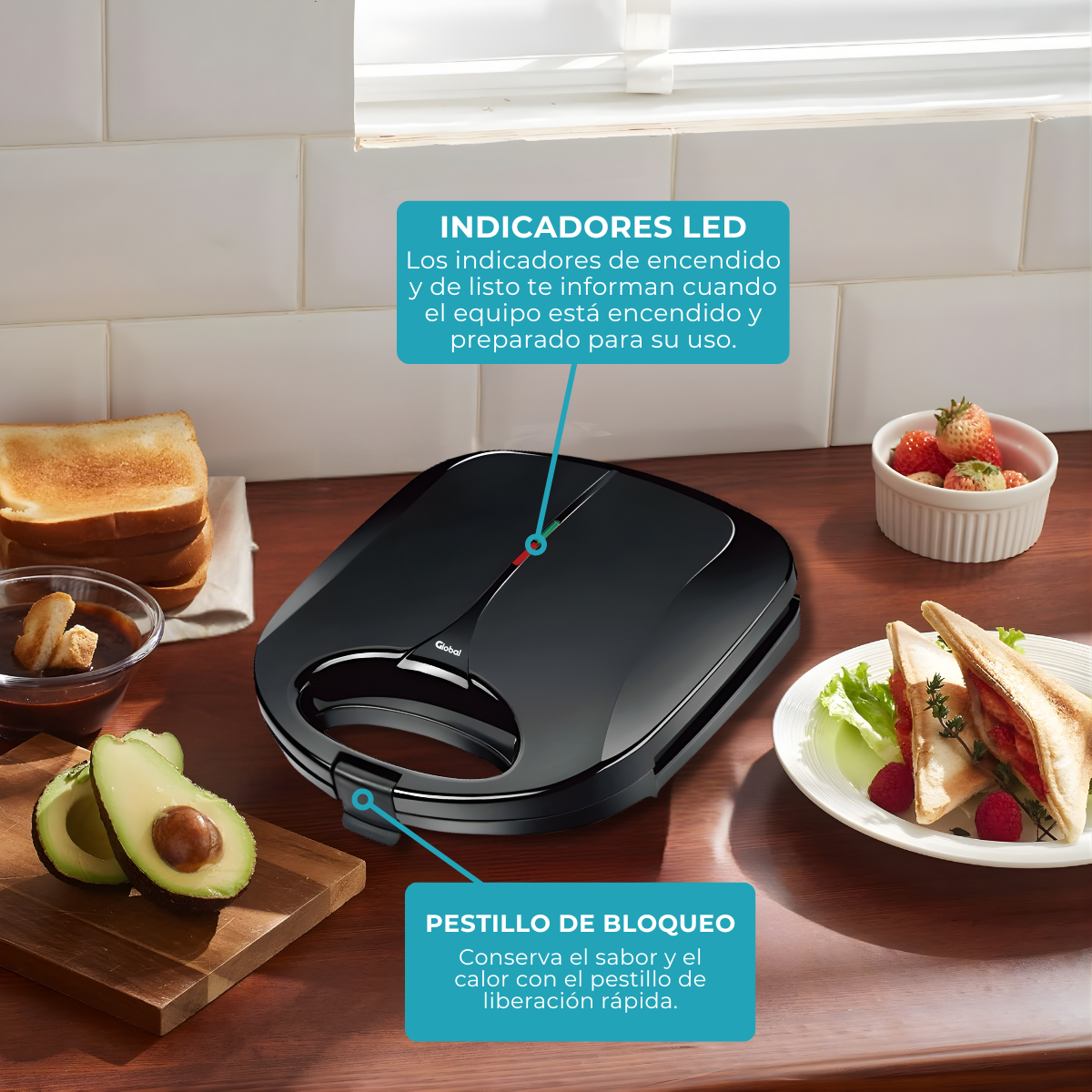 Sandwichera Eléctrica con Placa Antiadherente – Global Electronics
