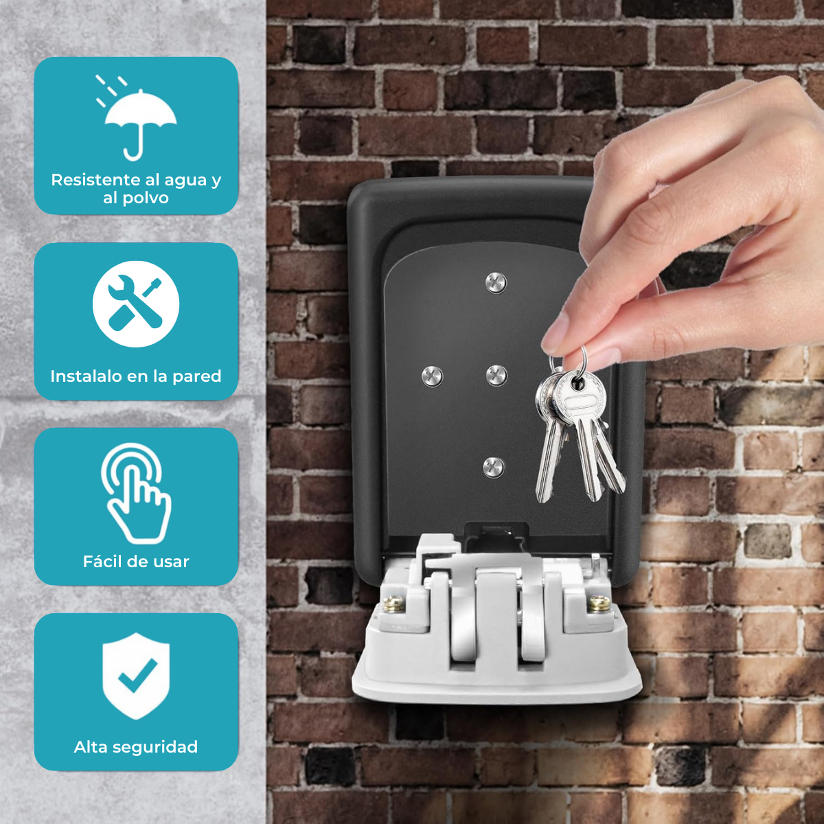 Presentamos la SAFEBOX‑KEYS de Global Electronics, perfecta para Airbnb, bicicletas, oficinas o residencias. Con apertura mediante combinación mecánica y respaldo de 2 llaves físicas, ofrece seguridad sin depender de baterías o contraseñas digitales.