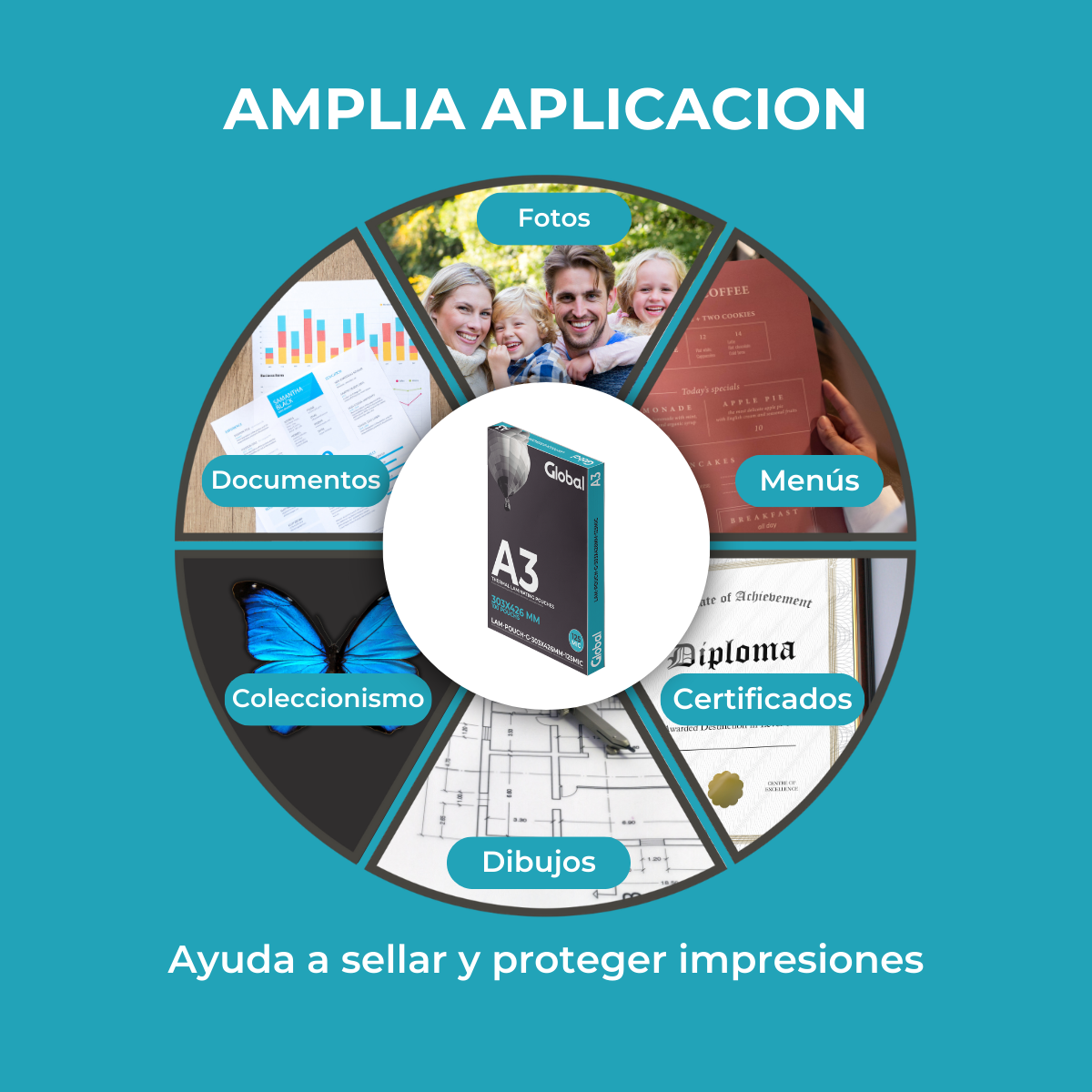 Los Pouch para plastificar en caliente tamaño A3 de Global Electronics ofrecen una excelente combinación de flexibilidad y resistencia. Su acabado brillante realza los colores y detalles, mientras que los 125 micrones de espesor aseguran una protección duradera sin comprometer la manejabilidad. Perfectos para uso en oficinas, instituciones o trabajos gráficos.