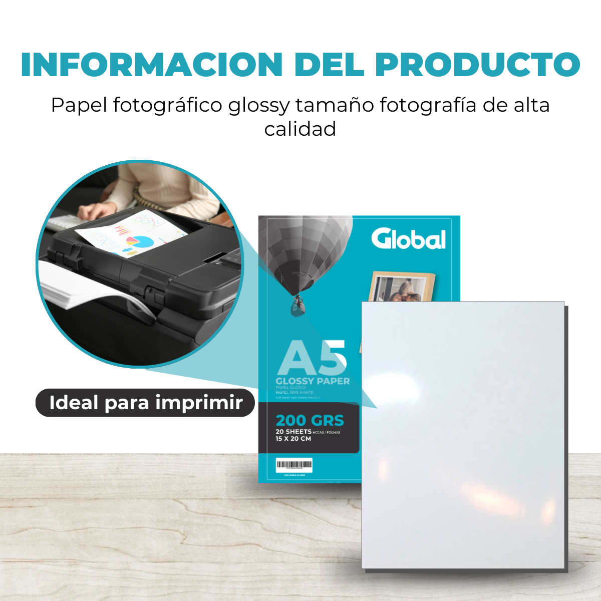 Papel Glossy Fotográfico A5 200g – Global Electronics