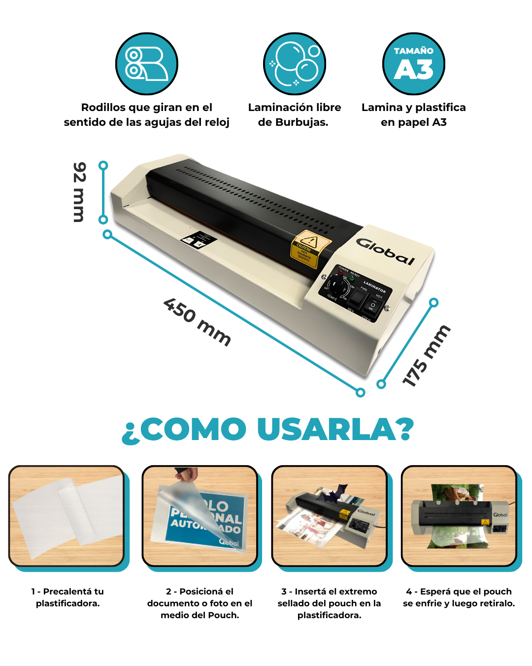 Combo Laminadora Profesional + Pouch Global Electronics