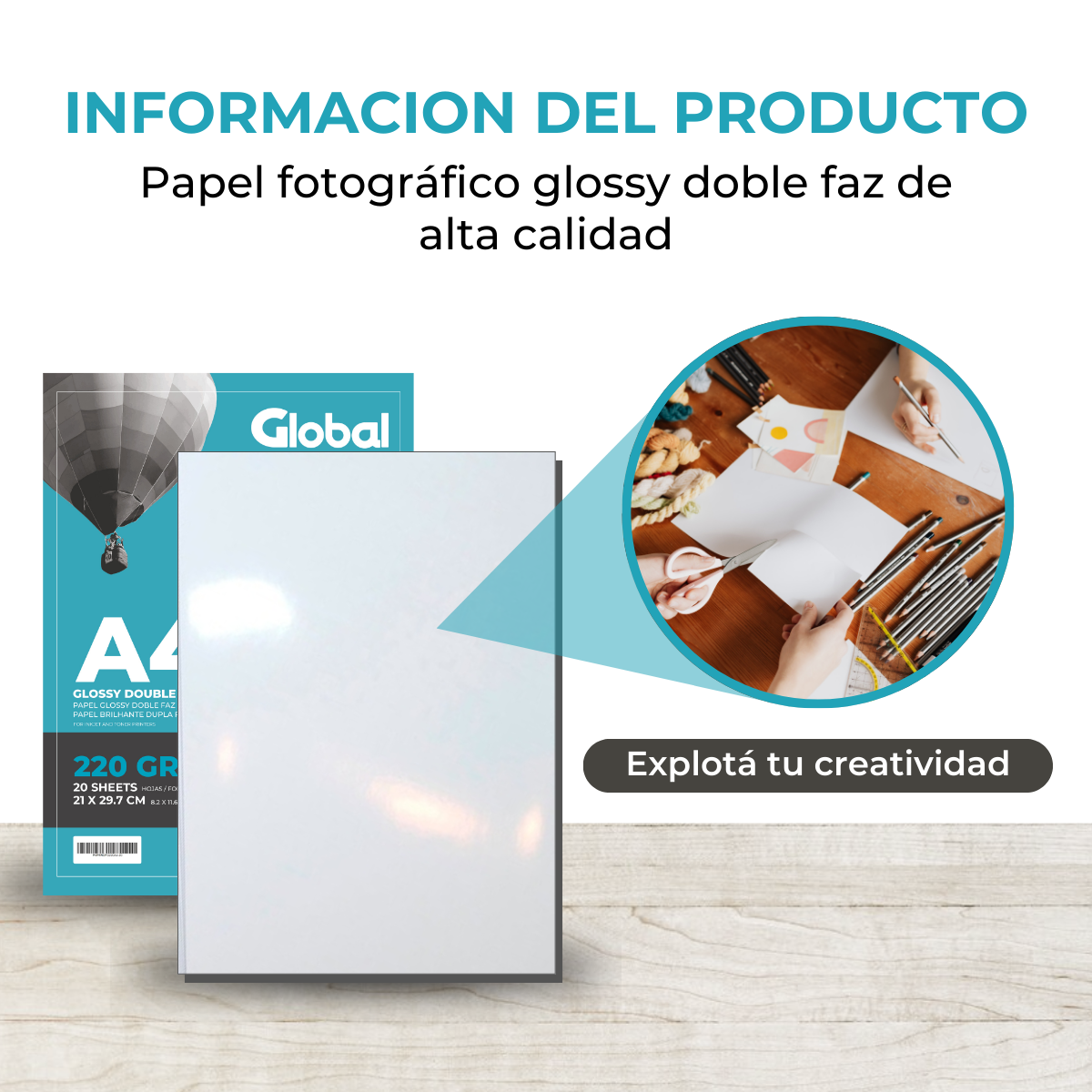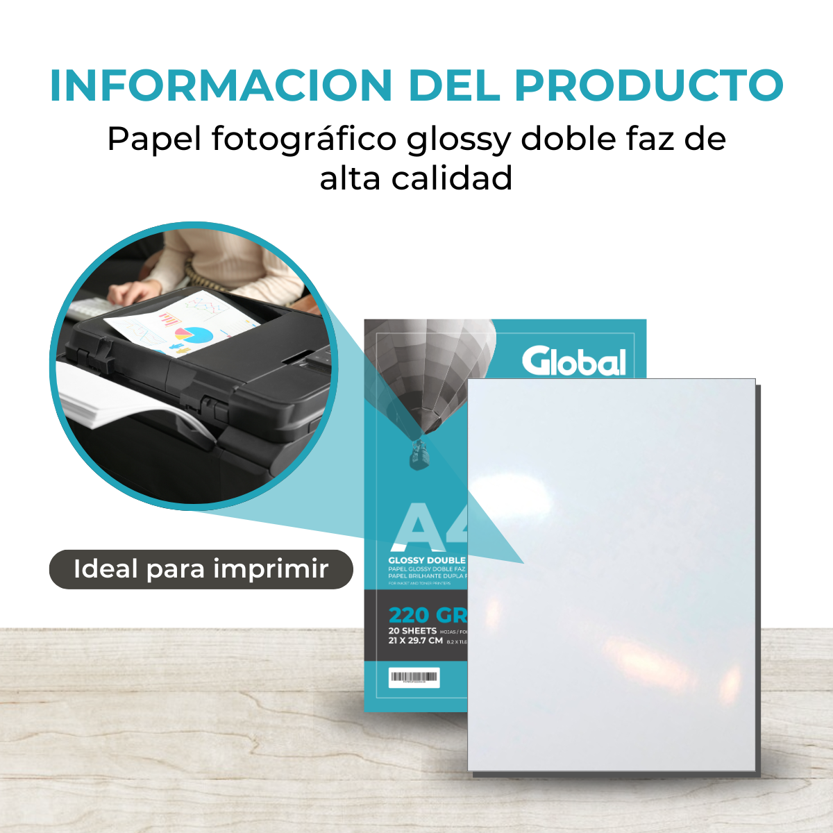 Descubre el Papel Glossy de Global Electronics, ideal para impresiones que requieren un acabado brillante y profesional. Disponible en resma de 20 hojas, en A4, y gramaje de 180 gramos, este papel es perfecto para fotografías, presentaciones visuales y proyectos gráficos.