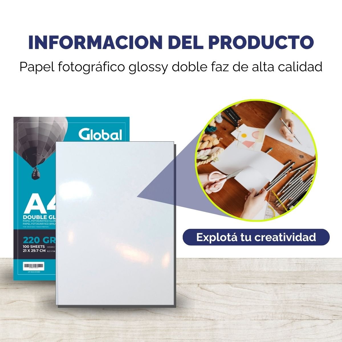 Descubre el Papel Glossy de Global Electronics, ideal para impresiones que requieren un acabado brillante y profesional. Disponible en resma de 20 hojas, en A4, y gramaje de 220 gramos, este papel es perfecto para fotografías, presentaciones visuales y proyectos gráficos.