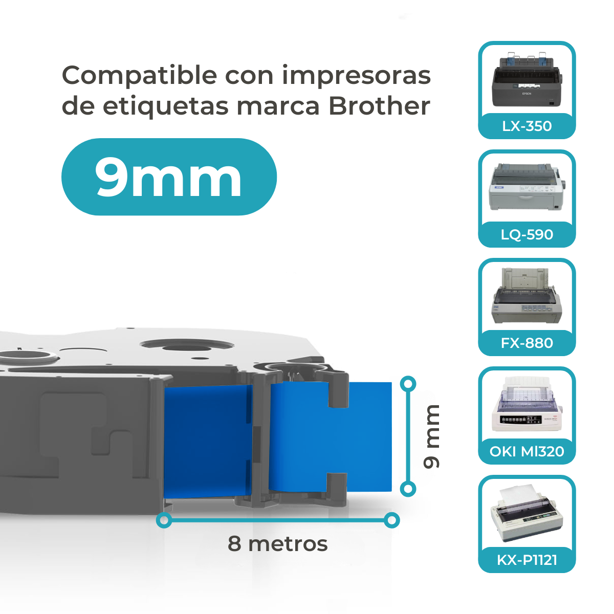 Compatible con: PT-55BM / PT-55S / PT-65 / PT-70 / PT-80 / PT-85 / PT-90 / PT-100 / PT-110 y otros modelos Brother.