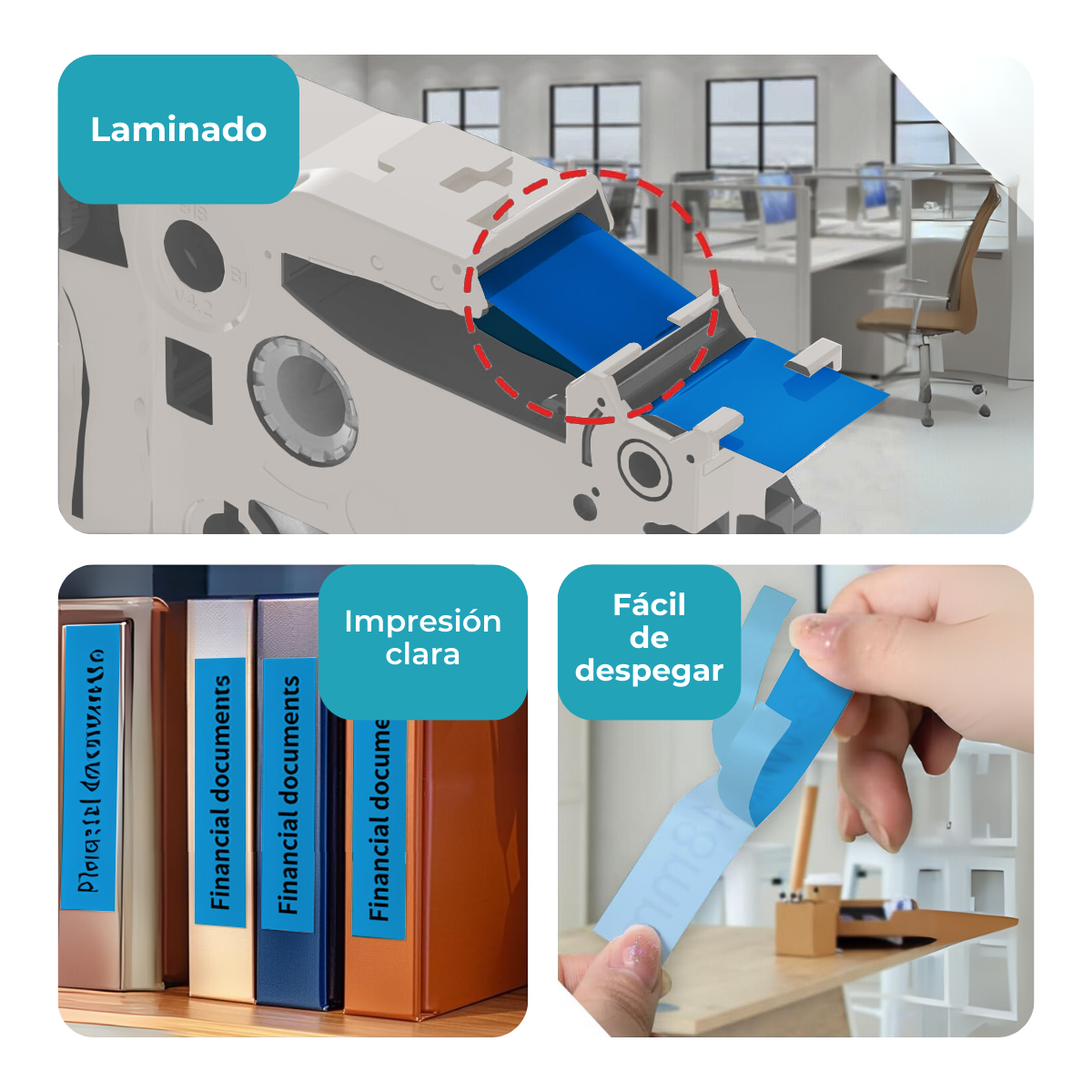 Rotulá con estilo usando texto negro sobre azul. Ideal para etiquetas llamativas en tus impresoras Brother P-Touch. Precisión y durabilidad garantizadas.