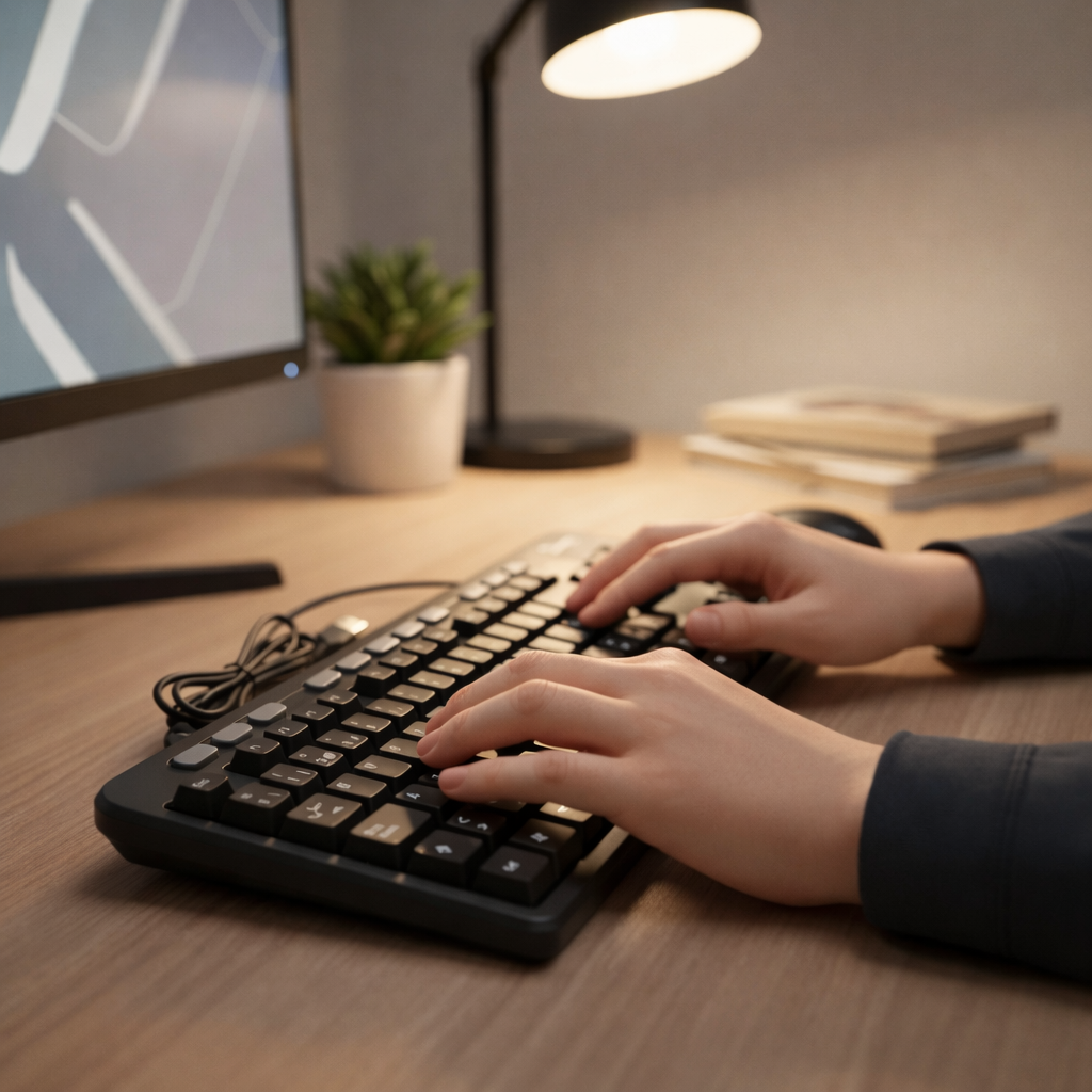 Este teclado con conexión USB y arquitectura de membrana está diseñado para ofrecer una experiencia de escritura suave, silenciosa y confiable.