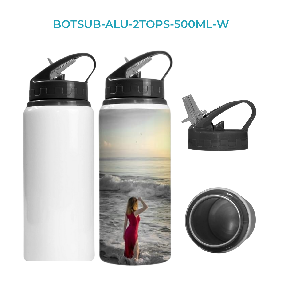 La Botella Sublimable de Aluminio de 500 cm³ con doble tapa deportiva es perfecta para quienes buscan combinar funcionalidad con diseño personalizado. Su cuerpo de aluminio blanco permite aplicar sublimación con excelente calidad de impresión. Gracias a sus dos tipos de tapa, es práctica tanto para el uso diario como para actividades deportivas. Ideal para regalos personalizados, promociones o uso personal con estilo propio.