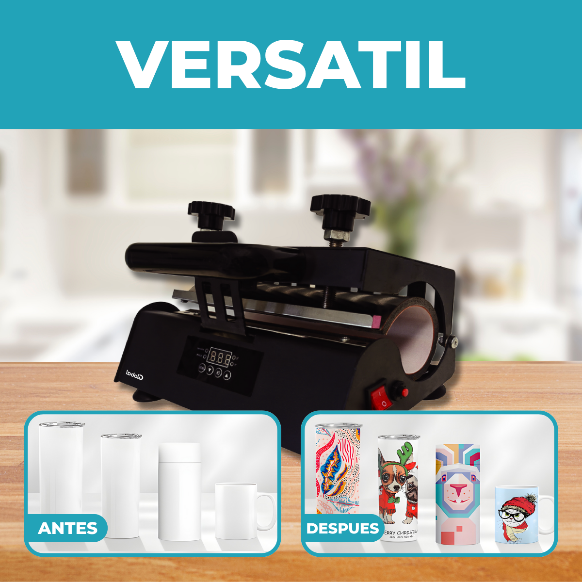 Su diseño robusto y versátil soporta tamaños de hasta 30 oz, ideal para tazas, termos y otros artículos personalizados.