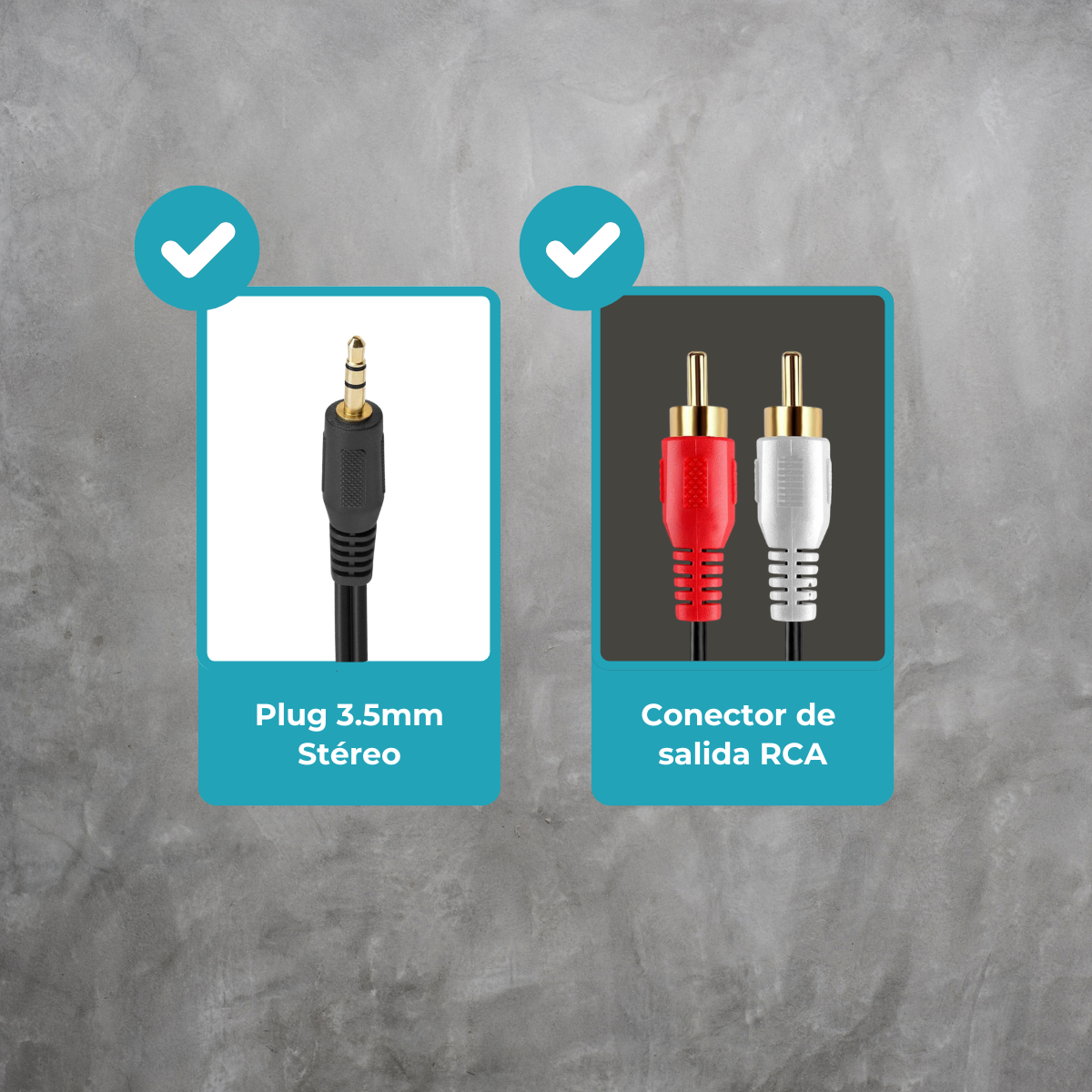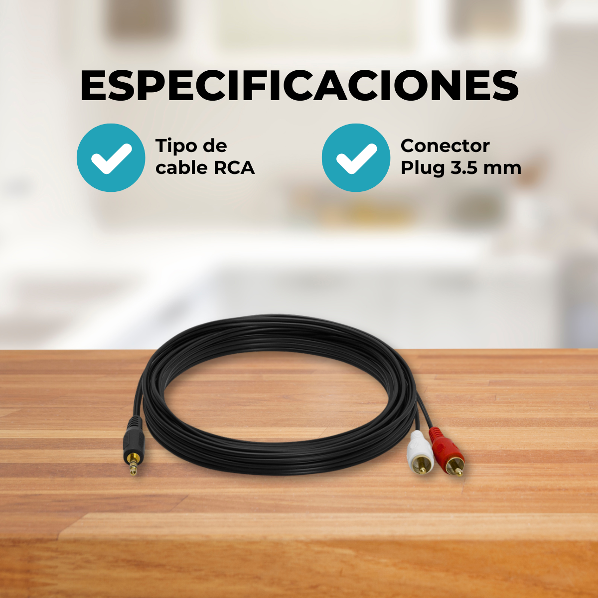 Cable de Audio Estéreo 3.5mm a 2 RCA - 2 Metros