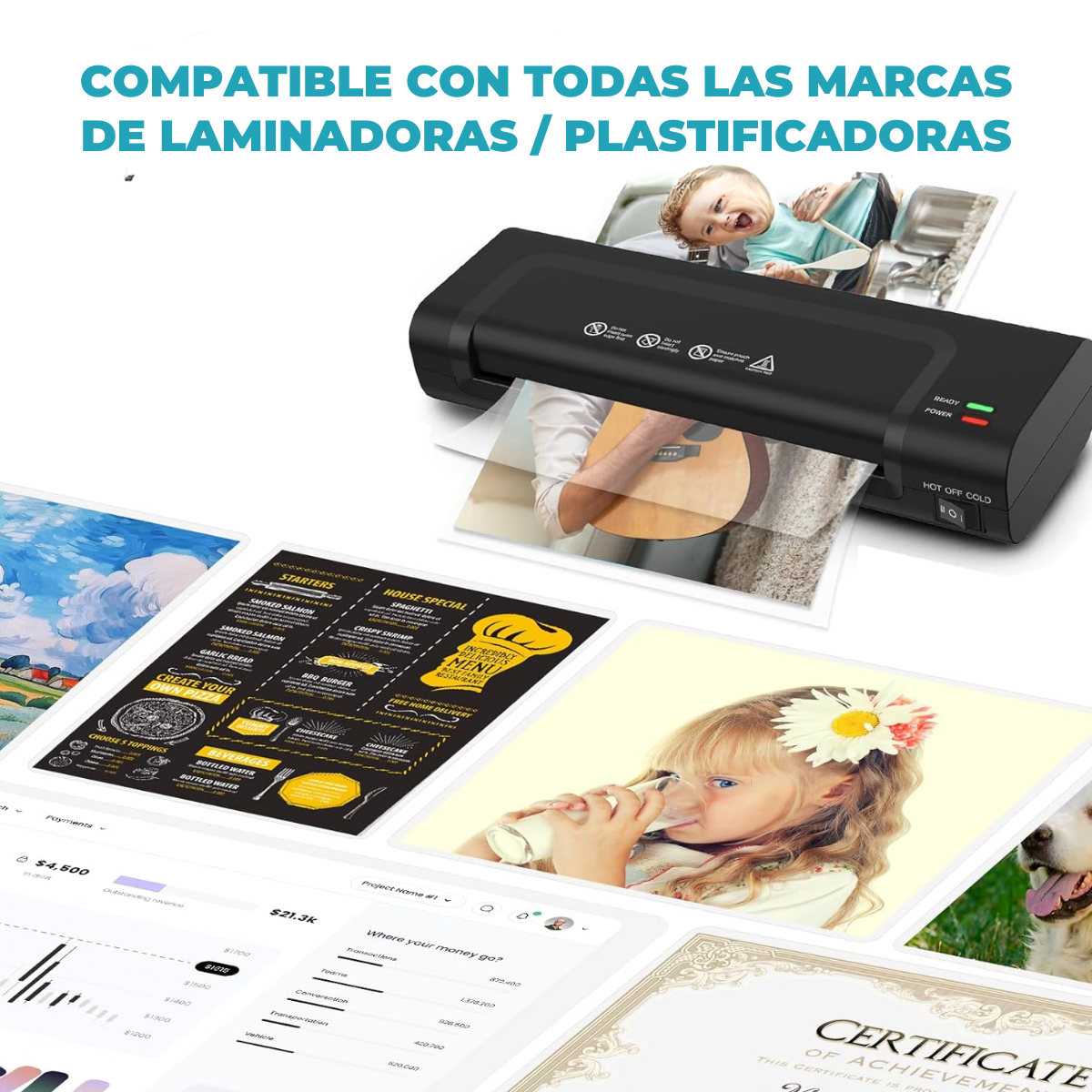 Pack de 100 unidades con alta transparencia y resistencia, ideal para plastificar credenciales y documentos pequeños.