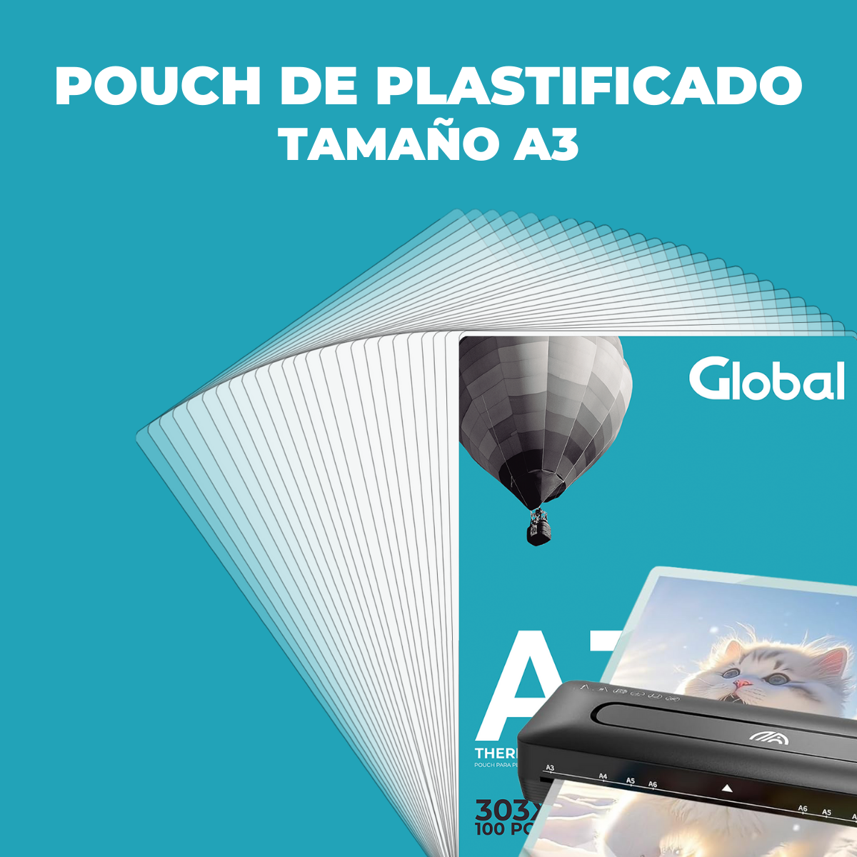 Los Pouch de poliéster para plastificar en caliente tamaño A3 de Global Electronics son ideales para preservar documentos de gran tamaño. Su acabado brillante realza los colores y el espesor de 150 micrones garantiza una protección superior. Perfectos para uso escolar, profesional, institucional o gráfico.