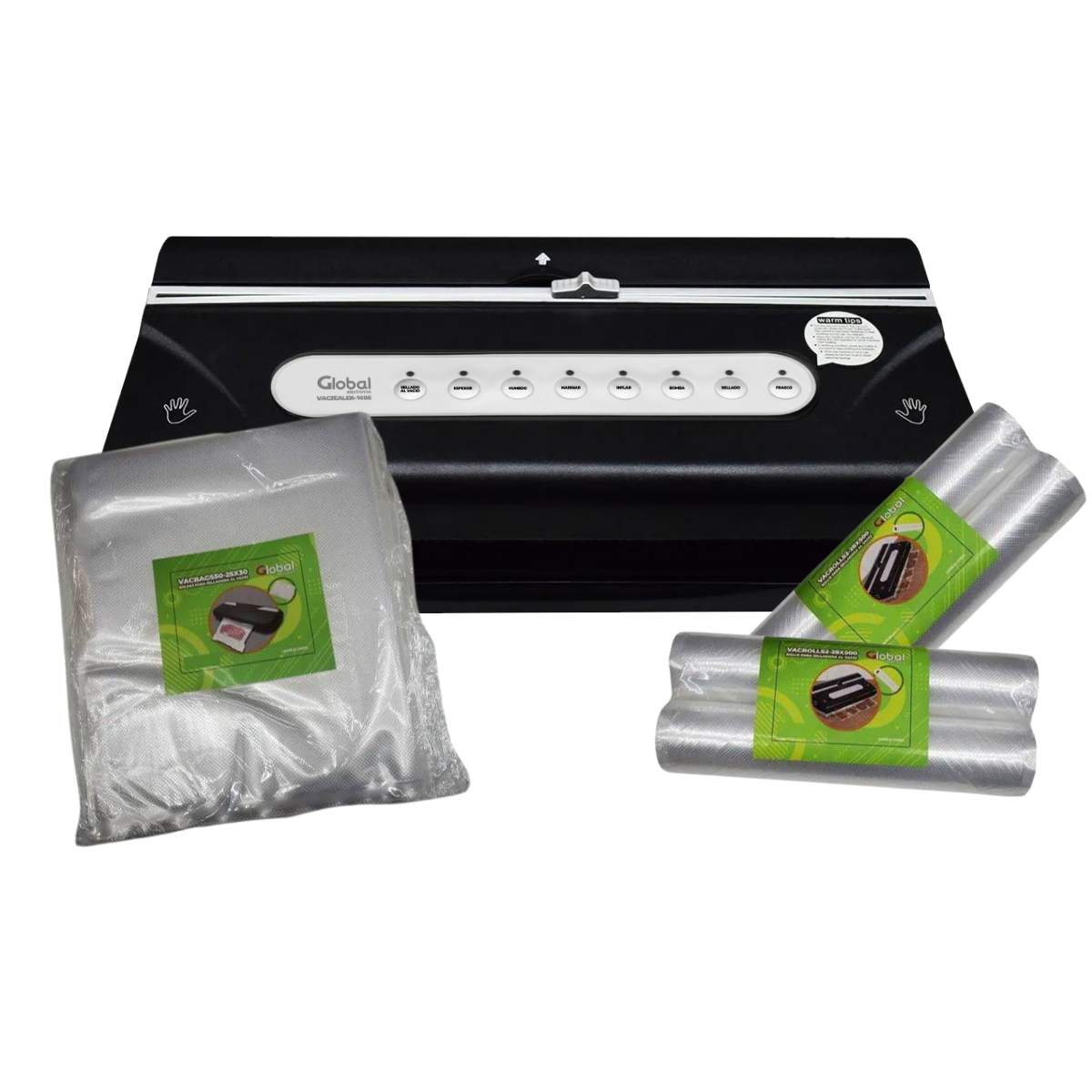 La Selladora al Vacío Global Electronics ofrece un sellado profesional de 30 cm, compatible con rollos y bolsas precortadas gracias a su portarollo con cortador integrado. Con una potencia de vacío de 9L/m y presión de 70kpa, permite conservar alimentos secos, húmedos o marinados, además de contar con función de inflado para proteger objetos frágiles. Su sistema de seguridad NTC evita sobrecalentamientos, permitiendo hasta 50 sellados continuos con solo 30 segundos de espera. Ideal para uso doméstico y profesional.