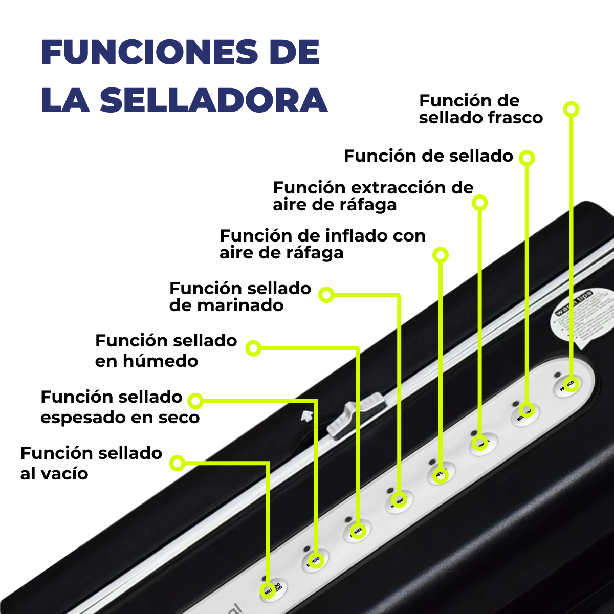 Funciones Vacío y sellado / Solo sellado / Inflado para frágiles